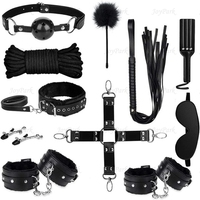 JoyPark Hot 11 Pcs/Set Jeu en cuir Paddle Neck Whip Bretelles Nipple Clamps BDSM Sex Clothes Leather Bondage Gear Toys